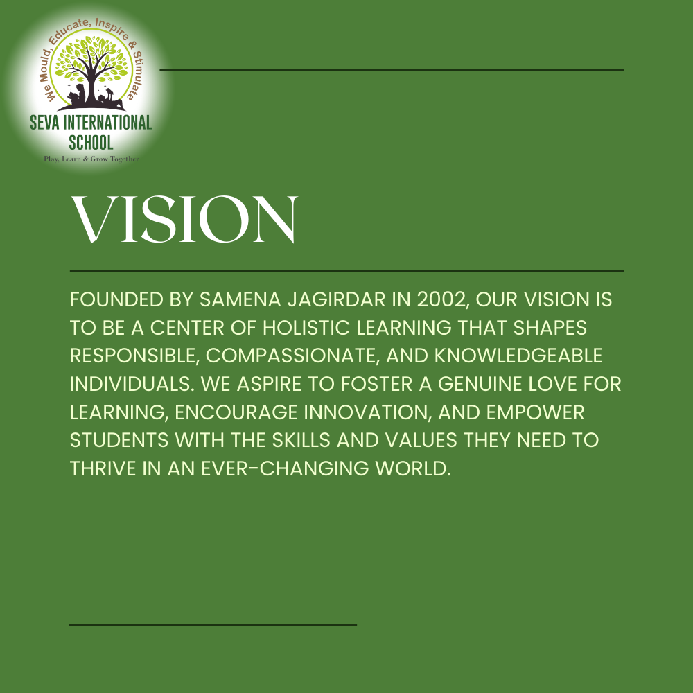 At Seva International School, our aim is to provide students with experiential learning that integrates essential life skills and values, while inspiring them to enjoy the process of learning. We strive to nurture a genuine love for knowledge, ensuring that what our students gain stays with them as a lifelong asset.